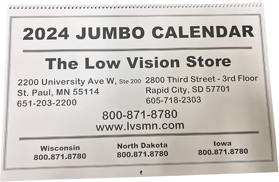 Source : www.calendarlabs.comAmazon.com: 2024 Low Vision Jumbo Print Calendar : The Low Vision